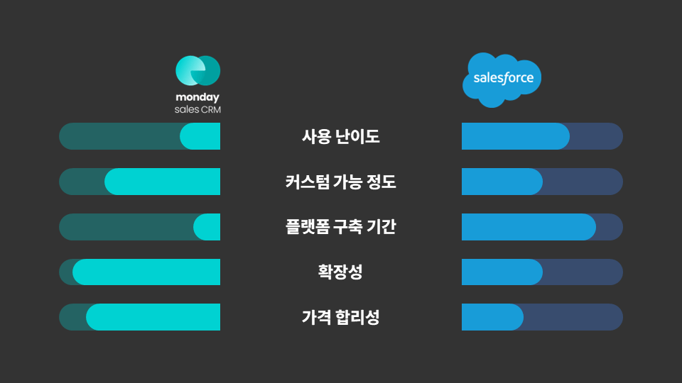 그렇다면 사용자 입장에서 세일즈포스보다 먼데이 세일즈 CRM이 더 나은 선택지가 될 수 있는 이유는 무엇일까요?