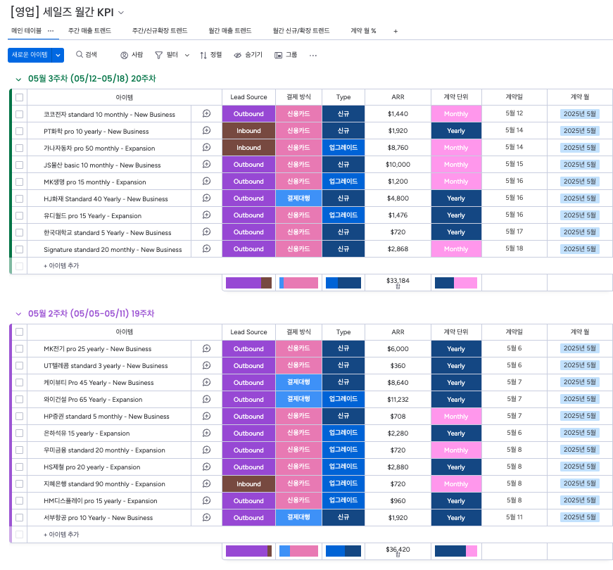 이 지표들을 통해 영업 프로세스가 원활하게 작동 중인지, 개선이 필요한지를 빠르게 파악할 수 있습니다.