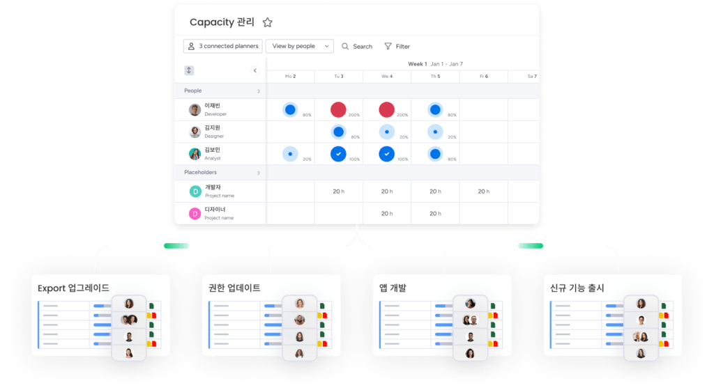 이를 통해 팀 전체의 업무량을 균형 있게 조정하고, 잠재적인 인력 리스크를 조기에 발견하며, 여러 프로젝트가 동시에 진행되는 상황에서도 효율적이고 안정적인 운영 체계를 구축할 수 있습니다.