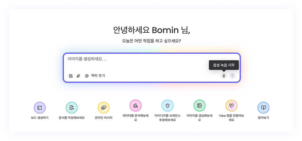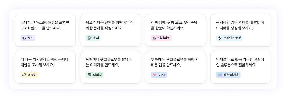 - 함께 고민하는 AI: 보드 데이터를 분석하거나, 웹 검색을 통해 필요한 정보를 탐색하고, 의사결정을 돕는 ‘AI 협업 파트너’ 역할을 수행합니다.