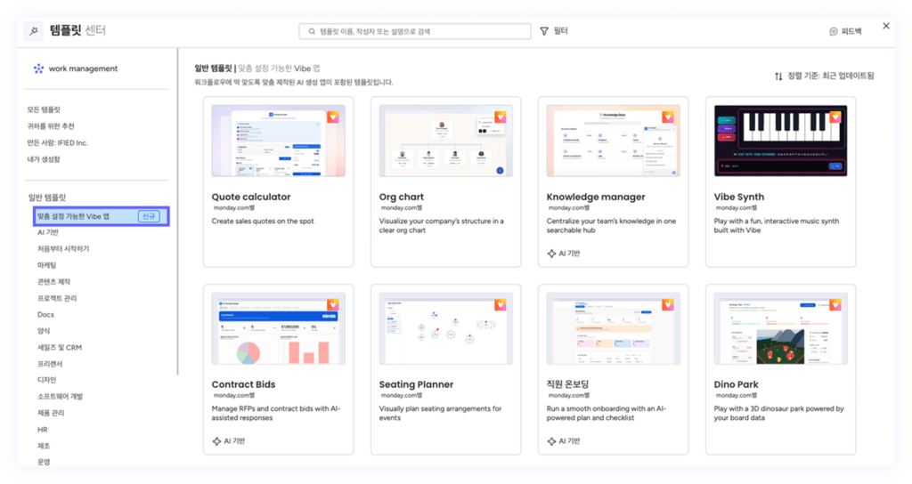 ⚠️ 참고사항: vibe 앱 생성 기능은 먼데이닷컴 유료 계정에서만 사용할 수 있습니다.